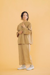 服に仕上がったときの風合い、布地の色の出方など個体差がでるため基本的に展示会来場者のみが購入できる一点ものとなっております。