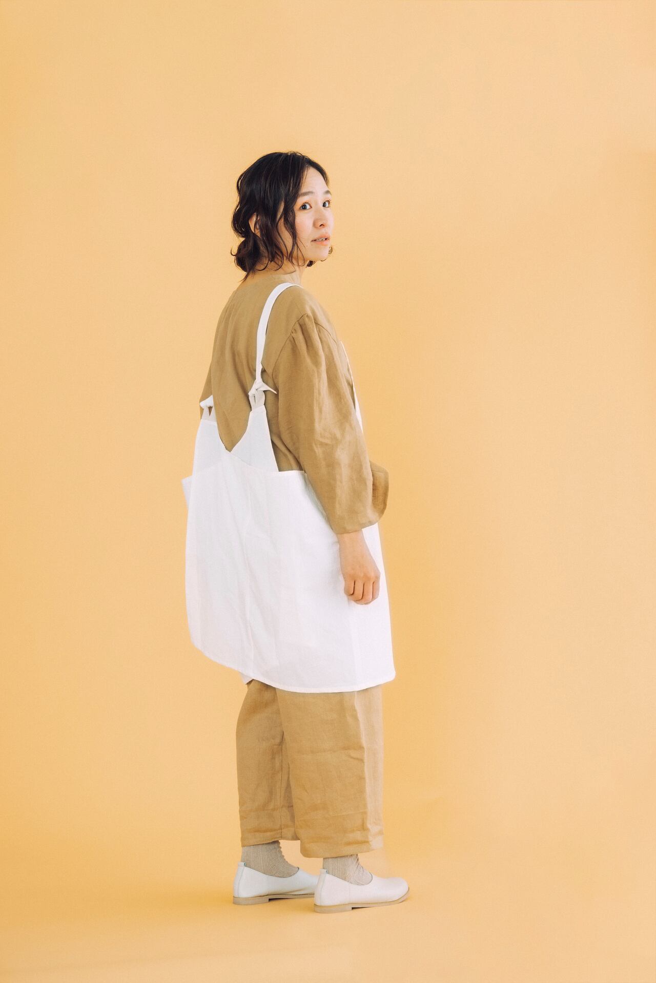 天然染とのコーディネート/ 白エプロンワンピースショート